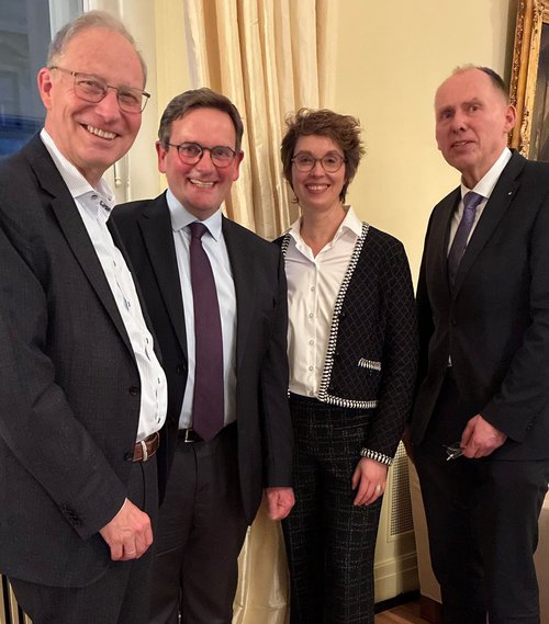 Dr. Hermann-Josef Baaken (DVT), Heiko Färber (bpt), Dr. Katrin Langner (IVH) und Prof. Dr. Eberhard Haunhorst (BMLEH) beim Neujahrsempfang des Bundesverbands Praktizierender Tierärzte e.V.