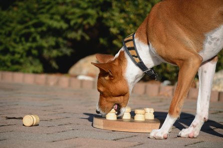 - Binden Sie eine Aktivität („Activity Feeding“) beim Füttern mit ein, wie z.B. Suchspiele, Intelligenzspielzeuge oder Schleckmatten. Diese verzögern bei schlingenden Hunden die Futteraufnahme und dienen gleichzeitig als Beschäftigung und auch Bewegungseinheit.