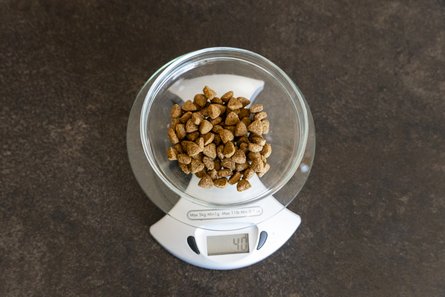 - Damit Ihr Hund bedarfsgerecht versorgt wird, sollten Sie die Futtermenge regelmäßig mit Hilfe einer Küchenwaage abwiegen.